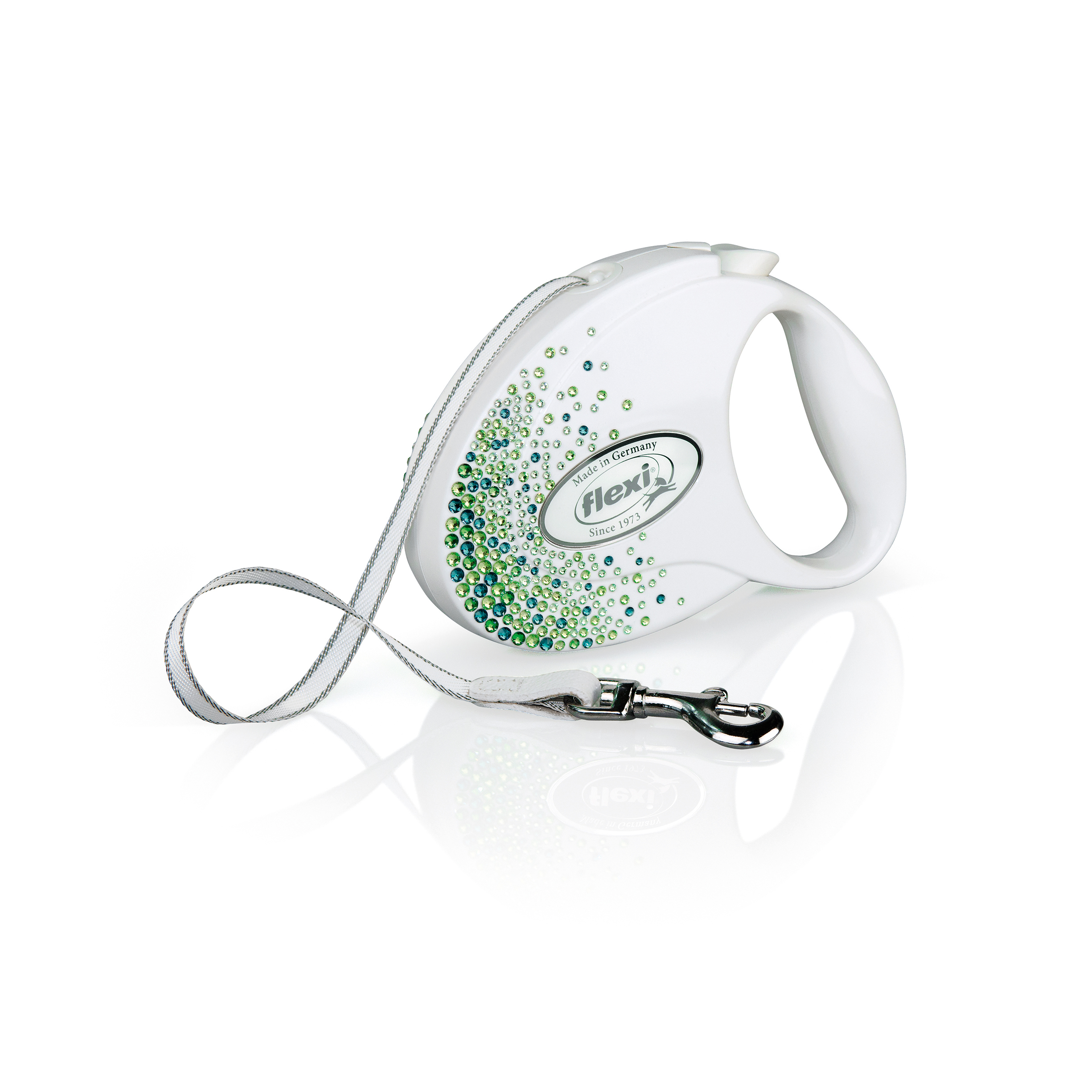 FLEXI Vodítko Glam Splash Leaf Tape 5 m s elementy Swarovski® bílé/leaf vel. M