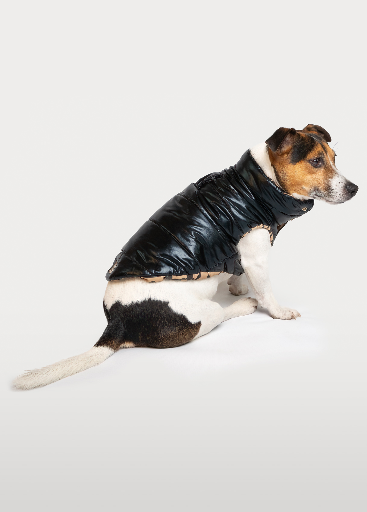 Metalická prošívaná péřová bunda se zapínáním na patentní knoflíky a vnitřní podšívkou.